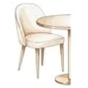 Modern marble dining table with six soft chairs. Strong wood legs and stylish design.